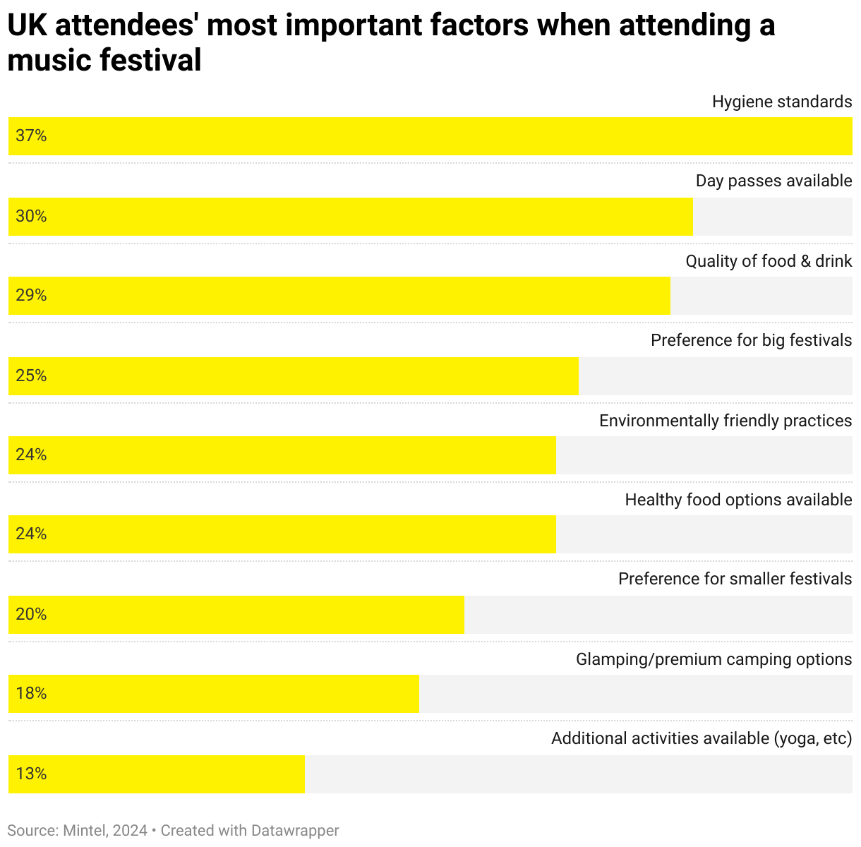 - 44% of festivalgoers identified food and drink deals as the top area needing improvement