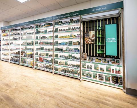 Spread across six bays, the store stocks 300 of H&B’s own label vitamins, supplements, specialist foods and sports nutrition products – the “most comprehensive range” offered in a pharmacy setting, H&B said.