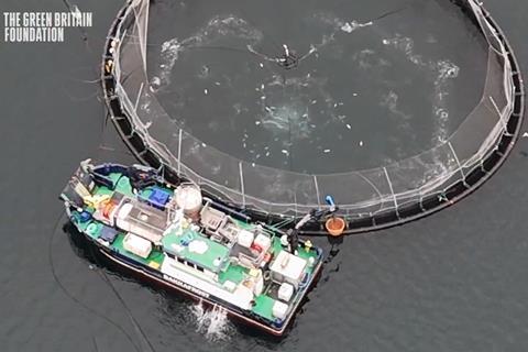 The footage, recorded by the Green Britain Foundation between 7 and 13 October, revealed allegedly diseased fish being dumped into the sea and salmon left to suffocate beyond the time allowed under RSPCA Assured welfare rules.