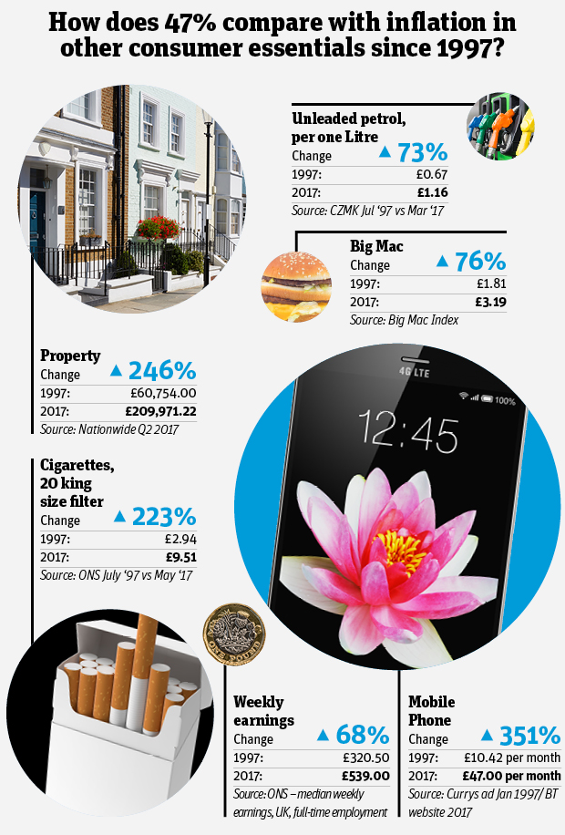 Potatoes were cheap as chips in 1997 with a pound of Jersey Royals going for 29p compared with an average of 89p today, an increase of 207%. For years spuds only inched up - five years on from the launch of the Grocer 33 they had only gone up by a few pence. But recent years have seen sharp hikes, with prices up 30% year on year in 2017.